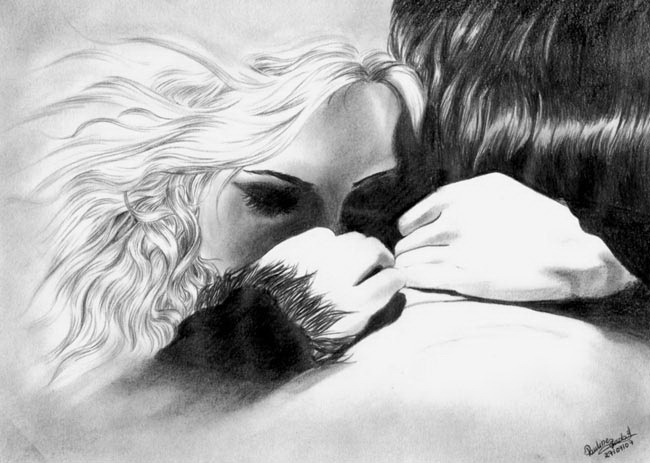 И вот однажды, дорога привела Её в высокие скалы. Дальнейший путь обещал быть опаснее любого другого. Она молча посмотрела на отвесную скалу, стоящую перед Ней и так же молча начала подниматься. Пока Она карабкалась, мелкий гравий скалы сыпался в лицо, подол платья изодрался в клочья, пальцы рук покрыли ссадины и мозоли, а над головой уже кружили два стервятника. Стиснув зубы крепче, Она всё равно продолжала свой путь. И когда Она оказалась на ровной площадке этой скалы, около отвеса Ей почудилась чья то спина. Она подошла ближе. Совсем рядом с краем, опустив голову вниз, стоял Он. Она посмотрела на Его одежду - вся в пыли и дырах от дальней дороги. Она взглянула на Его ноги - босиком и все в царапинах и мозолях. Она отважилась посмотреть Ему в глаза - в них сияла надежда, таилась любовь.