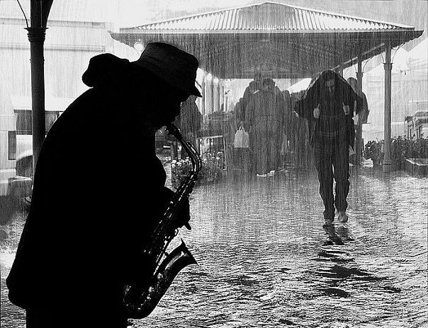 Он открывает чёрный футляр, достаёт из него свой серебряный саксофон и начинает играть. Он играет всегда одну и ту же мелодию, их любимую мелодию, этот блюз… «Блюз дождя» в память о ней, о первой и единственной его любви… Раскидистая крона старой липы, на какое-то время, спасает звучащий инструмент от усиливающегося с каждой минутой дождя, и саксофон рыдает громко, отрешённо, самозабвенно…
