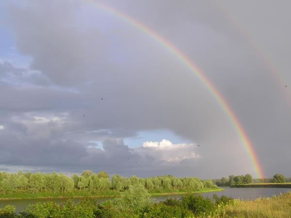 После благодарственной молитвы, оканчивающейся словами: "Благодать Господа Иисуса Христа, и любовь Бога Отца и общение Святого Духа со всеми нами. Аминь!", мы вышли на улицу. И тут я увидела яркую радугу, которая разноцветным мостом перекинулась от одного края горизонта до другого. Все смотрели на небо, улыбались друг другу и восторженно говорили: " Какая красота! Какое чудо!"