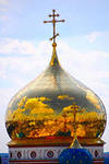 Жёлтенький, словно золото, купол над храмом символизирует свет и чистоту Царства Небесное.